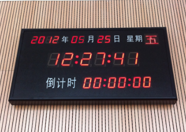 子钟采用1.8英寸、3英寸、5 英寸、8英寸、12英寸以及更大尺寸的发光二极管显示单元(LED)显示由数字组成的时间信号。颜色为黑底红字,显示格式为 “年:月:日:时:分:秒:星期”、“ 年:月:日:时:分:秒”及“时:分:秒”等内容,安装方式为壁挂(默认方式)、吊装、嵌入等方式,可根据现场环境而定。